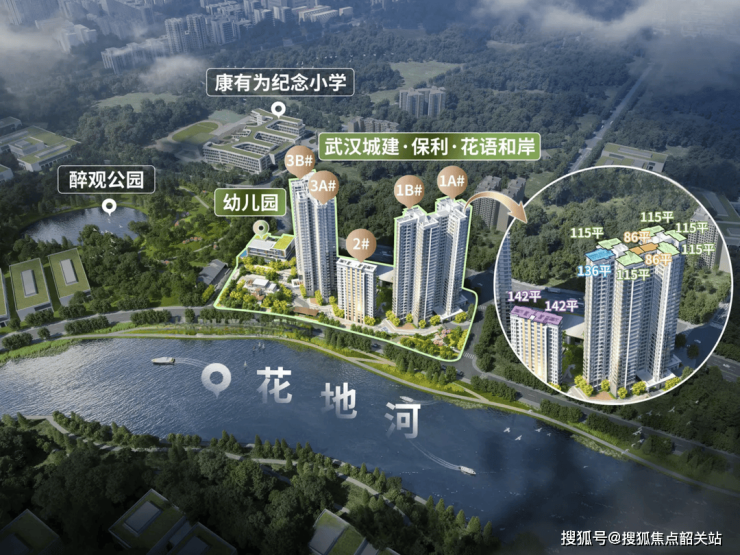 景观资源:项目北侧紧邻花地河,直线距离约50米,东侧紧邻3.6万平方米的醉观公园,提供了丰富的休闲娱乐场所。
