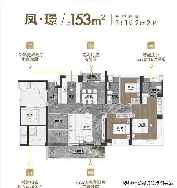 建面约153 - 232㎡的大平层户型,全盘专梯专户,彰显尊崇归家体验。约18m南向采光面,让阳光肆意倾洒室内;约270°IMAX无界景观,窗外美景尽收眼底;约99%的户型实用率,空间利用率极高,无论是三代同堂的大家庭还是追求品质生活的高端人士,都能在此找到理想之居。