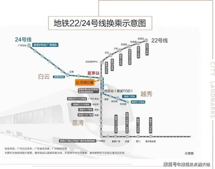 地理位置优越:花城云著坐落在白云新城与白云湖数字科技城之间,能够享受到两大核心板块的资源外溢。项目紧邻地铁22号线和8号线北延段支线夏茅站,交通便利,出行便捷。