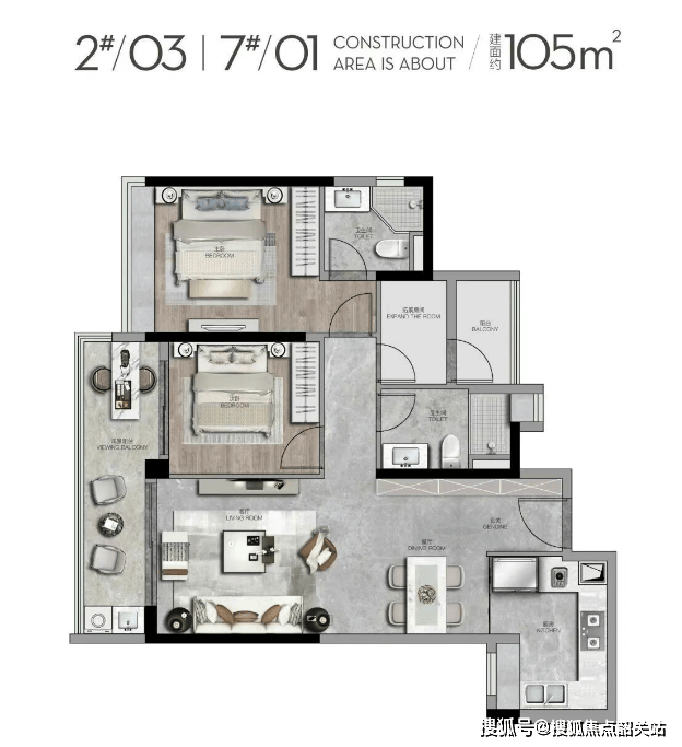 6. 户型设计怎么样?105-140㎡三至四房,兼顾实用与奢适