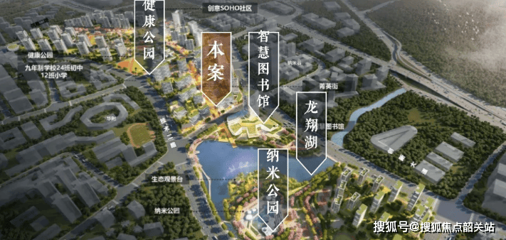 如果说龙翔湖是生态的脊梁,那么周边的双公园则是生活的点缀。项目周边规划有13万㎡的纳米公园和2万㎡的健康公园,这两大公园共同构成了一个庞大的绿色休闲网络。
