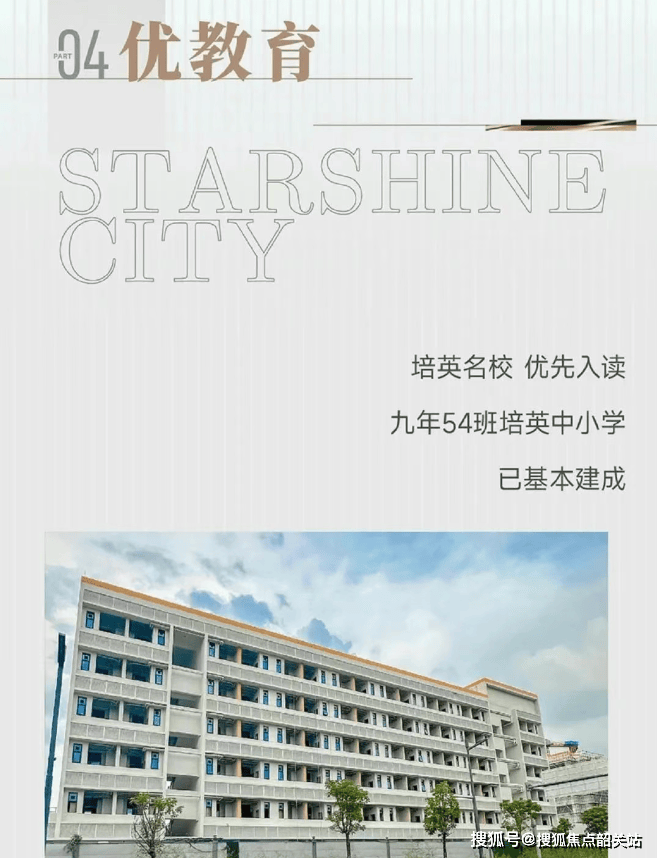 中建星光城对面设有54班九年一贯制公办中小学——培英中学,由中建集团鼎力助学,政企学三方携手聚力。小区业主子女可优先入读,人户一致优先入学原则保障了教育质量。周边还有多所优质学校,形成了完整的教育体系。