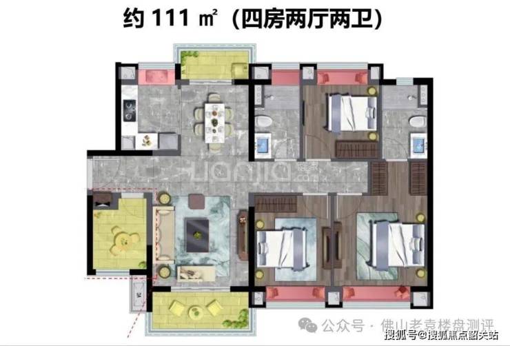 111㎡ 3+1房 2厅 2卫:舒适宽裕的四口之家优选