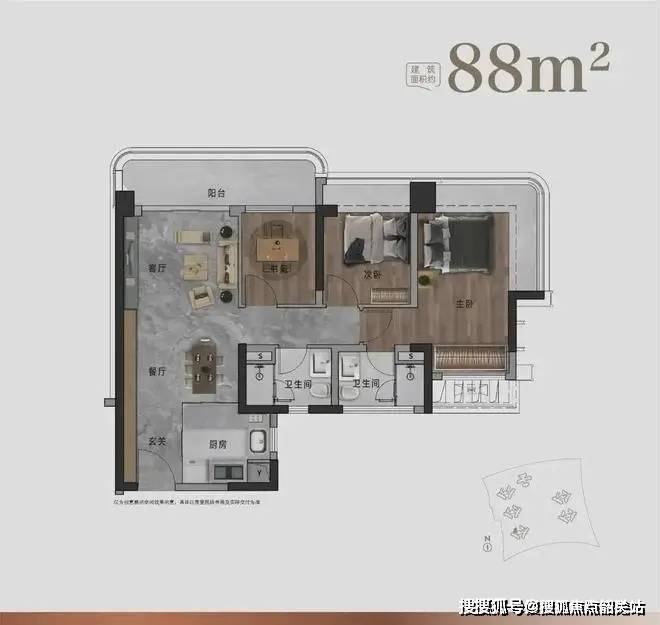 105㎡户型:约6.1M巨幕阳台 | 270°环幕瞰景主卧|LDKB一体化设计