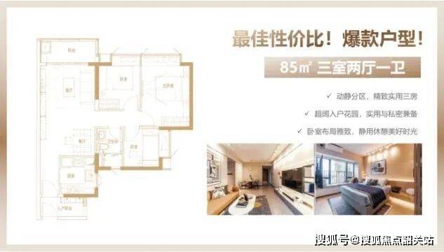 85㎡三房:紧凑实用,适合刚需购房者,功能齐全,布局合理。