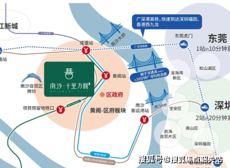 多维交通,畅达湾区:南沙十里方圆交通优势显著,虽然距离地铁 4 号线黄阁站约 2.6 公里,但公交接驳顺畅,弥补了步行距离的不足。其所在的 31 号线地铁上盖,可串联 4 号线、18 号线等多条线路,上连广州市区,下通珠海、深圳。磁悬浮规划使其 10 分钟可通达广州、深圳,3 小时畅达京沪。高铁网络也极为发达,21 分钟抵达深圳、35 分钟直达香港,拥有广深港高铁等九大高铁线路。自驾出行同样便捷,20 分钟到番禺,35 分钟到天河,40 分钟到深圳,畅达湾区核心城市。家门口 13 条公交线路,进一步提升了出行的便利性。项目所处的地铁线与南沙城市发展主轴走向一致,串联起南沙 “高新产业区、中央住居区、高端金融区、交通枢纽区”,是南沙的生命线与大湾区财富经济线,更是南沙唯一联动庆盛枢纽、南沙枢纽双 TOD 的地铁线路,尽享城市发展利好。
