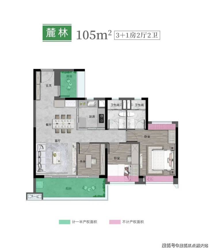 🔹明星户型 / 105㎡3+1房2卫