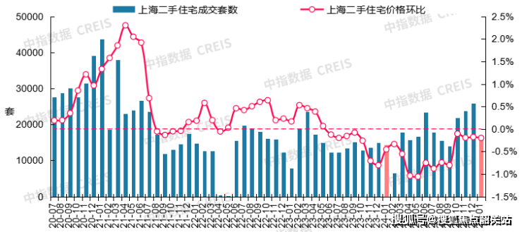图:2020年7月至2025年1月上海二手住宅成交套数及二手住宅价格环比走势数据来源:中指数据CREIS(点击查看)市场监测:https://www.cih-index.com