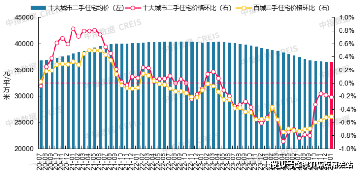 图:2020年7月至2025年1月十大城市二手住宅均价及环比变化数据来源:中指数据CREIS(点击查看)市场监测:https://www.cih-index.com