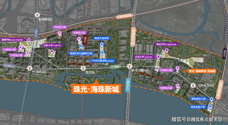珠光·海珠新城地理位置优越,紧邻珠江,周边生态环境优美。项目附近现有4条地铁线路——3号线、2号线、18号线和广佛线,通过3号线沥滘站,可快速到达广州塔和珠江新城等重要区域。未来,该地区还将新增地铁19号线、24号线、26号线及广佛延长线等,进一步提升交通便利性。