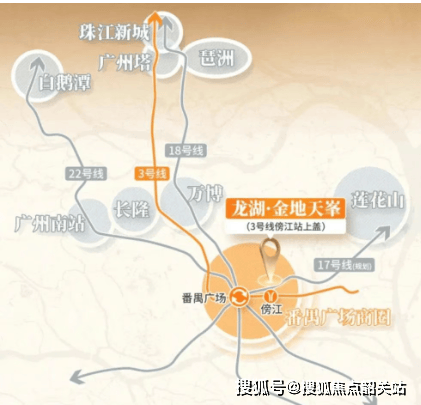 项目交通优势显著,楼下便是地铁 3 号线东延段傍江站,一站直达番禺广场,在此可换乘 18/22 号线。业主乘坐 3 号线能直达珠江新城,或通过换乘实现 2 站到万博,3 站到琶洲 / 广州南站等。未来,地铁线路还将串联东莞与深圳,融入大湾区交通网络。通过地下车库可直达龙湖天街并连通地铁口,同时设有社区天桥,出行无惧风雨。经实测,地铁出行到万博约 25 分钟,到琶洲约 44 分钟,到珠江新城约 43 分钟;自驾前往万博中心、海珠琶洲、珠江新城等城区中心,基本能在 1 小时内到达,地铁出行更为省时省力。