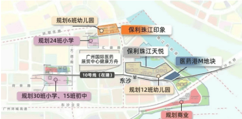 『保利·珠江印象』所在区域是广州珠江后航道的重要节点,规划对标世界级港湾码头,滨水一线以公共功能和开敞空间为主,致力于打造“东沙国际商贸港、产城协同活力湾”。区域内规划有医药健康产业创新示范区、高端滨水休闲旅游体验地和生态宜居品质生活理想城。项目本身临近8万方滨江水港,享受广州唯一的世界级内港湾美景,为居民提供了一个宁静优美的生活环境。
