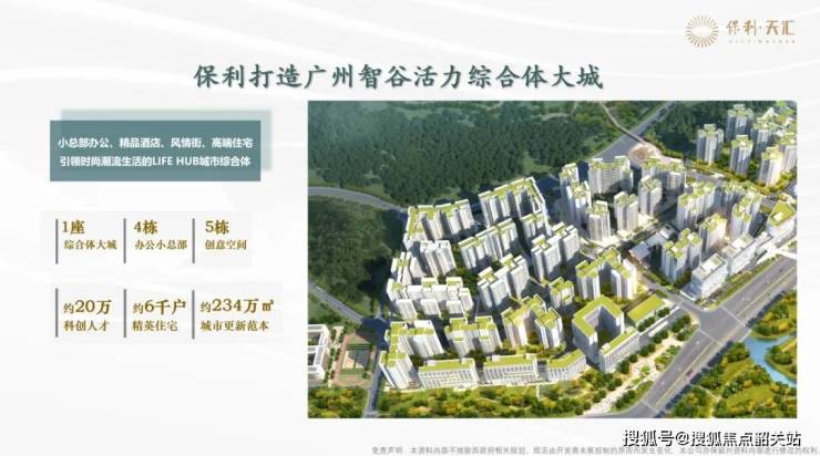 保利天汇项目位处天河智谷中心,整体占地面积超30万㎡,计容建筑面积约79万㎡。
