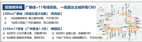 轨道交通作为主城出行核心优势,项目双地铁线路加持,轨交出行优势突出。距离广州11号线棣园站直线距离约250米,11号线作为广州黄金环城环线,串联全城多个核心板块,换乘网络完善;临近广佛线燕岗站,直线距离约400米,广佛线贯通广州与佛山双城核心区域,轻松实现跨城出行,双轨交汇的布局,减少换乘等待时间,零换乘便捷通达全城核心节点,虹吸广佛双城优质资源。所有站点距离数据均为权威地图直线测绘数值,仅供出行参考,实际步行路线以实地路况为准。