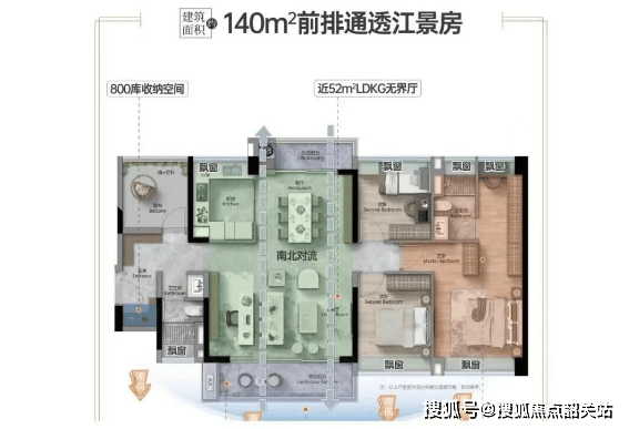 江海潮鸣的产品力,堪称越秀近年“打磨最细”的代表作。三大主力户型——96㎡三房、123㎡四房、140㎡奢阔四房,均以“高得房率+强采光+大阳台”为核心标签。96㎡做到三开间朝南+6.4米景观阳台,刷新同面积段空间尺度;123㎡王牌户型拥有15米南向采光面、主次卧双南向,LDKG一体化布局提升家庭互动性;140㎡则配备双阳台、16米南向面宽、独立衣帽间与套房主卧,堪比改善标杆。尤为难得的是,全系户型得房率高达95%,远超市场平均80%-85%水平。在限价、限高、限密度的政策约束下,越秀通过精细化设计,将每一寸空间价值最大化,真正实现“小面积大享受”。