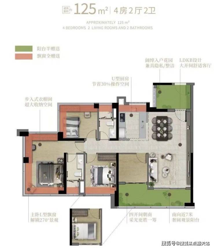时代创客小镇推出的全新125-143㎡户型一经亮相便吸引了众多改善客户的目光。其中,125㎡四房户型堪称“空间魔术师”,通过超高使用率与人性化设计,实现了空间的最大化利用。而143㎡四房户型则更显阔绰,南北对流双阳台设计保证了通风采光效果,每个房间都带有落地飘窗,使阳光可以充分洒入房间。