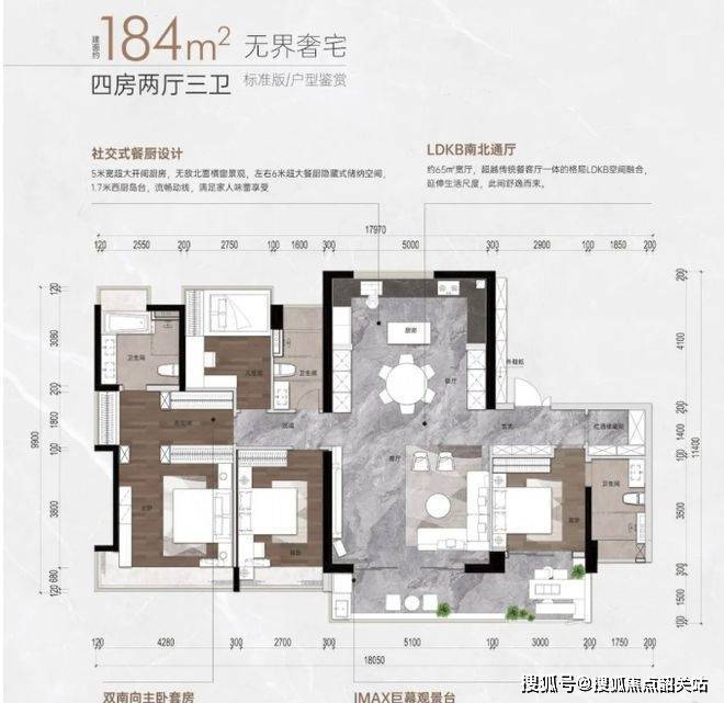 184㎡改善大平层:专梯专户的设计,定制私属归家路线,极大地提升了居住的私密性与尊贵感。同样延续 “LDKB + X 空间” 设计,打造出无界一体化的空间,满足家庭多样化的生活场景需求。多房间的布局可灵活安排,如设置书房、健身房等,满足业主个性化的生活方式。双入户大堂,更增添了品质归家的场景感。