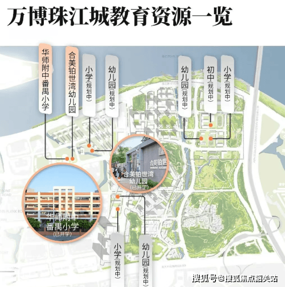 项目内部规划了9所中小幼学校,包括已开学的华师附中番禺小学(24班)和合美铂世湾幼儿园(12班)。尽管初中教育资源尚未完全明确,但未来配建的初中学校有望进一步提升整体教育资源水平。