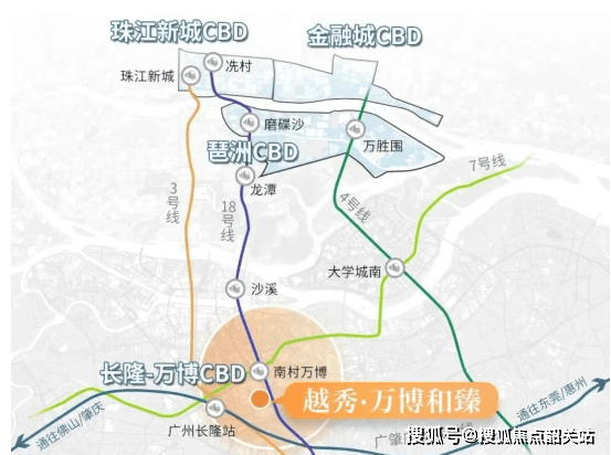 越秀万博和臻位于番禺万博 CBD 板块,凭借 “三地铁 + 多维路网” 的立体交通网络,实现了与海珠、越秀双主城的高效联动。项目周边现有地铁 3 号线、7 号线、18 号线,一期组团距离地铁南村万博站约 1.6 公里,步行约 20 分钟,未来社区将设置便民车接驳;自驾可通过番禺大道、汉溪大道、新光快速等干道,不堵车时 30 分钟可达珠江新城、琶洲等核心区域,构成立体交通体系,畅达全城。