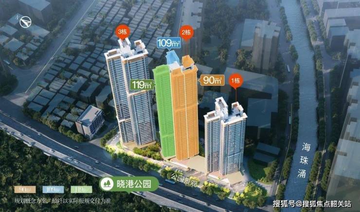 景观升级:东望中大、广州塔;北望二沙岛珠城,西南向直望晓港公园