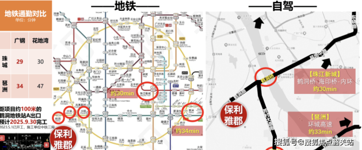 交通方面,保利雅郡拥有中心区极为罕见的便捷出行条件。项目距离地铁鹤洞站仅约100米,步行可达。该站为广佛线重要节点,连接佛山与广州主城区,一站可换乘11号线(预计2024年底通车),两站到昌岗换乘8号线,通达珠江新城与琶洲核心区约30分钟。未来鹤洞站A出口预计2025年完工,通行将更加便捷。自驾出行同样顺畅,项目临近鹤洞路,直通环城高速、芳村大道及洲头咀隧道,可快速前往天河、越秀及海珠等核心区域。交通网络成熟完善,无论日常通勤还是休闲出行,均能实现快速切换,为都市生活提供高效支持。