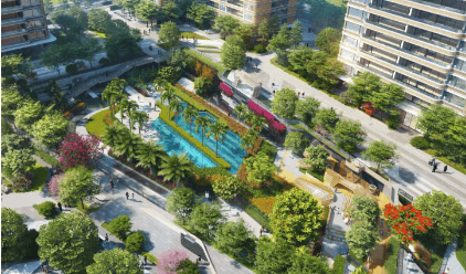 园林与配套:小区园林总面积达 3.5 万平方米,中央区负一楼设有大型水景、泳池区、瀑布区和儿童游乐区。丰富的园林景观与休闲设施,为业主提供了休闲娱乐的好去处,足不出户即可享受度假般的惬意生活。