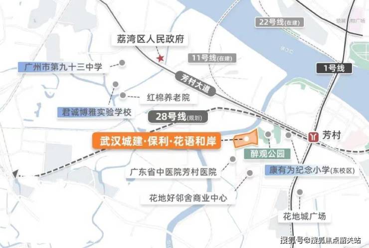 项目距离地铁1号线芳村站约800米,步行大约需要12分钟即可到达,无需换乘便能直达越秀、天河等地。此外,在建的11号线、22号线以及规划中的28号线距离项目也仅有百米之遥,未来出行将更加便捷。自驾方面,周边有芳村大道、花地大道等主要道路网络可供选择。