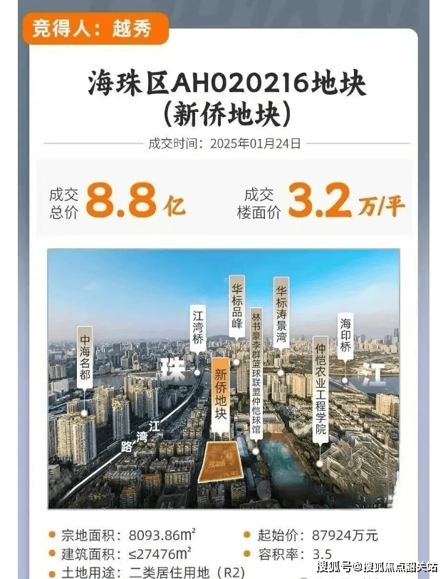 越秀新侨地块——3.2万/㎡起,滨江中板块的精致生活新篇章