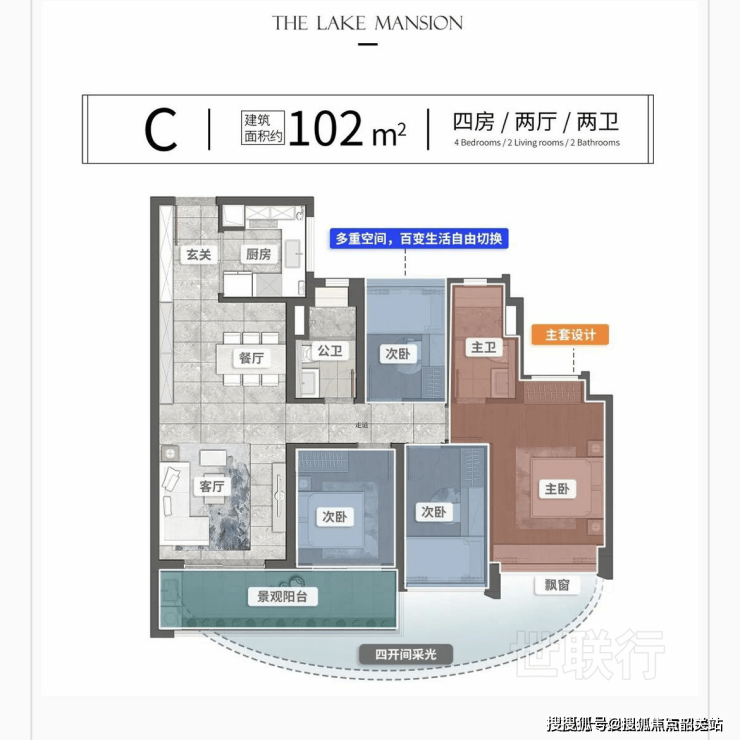 主卧套房:配备独立卫浴及全景飘窗,私享尊崇体验;