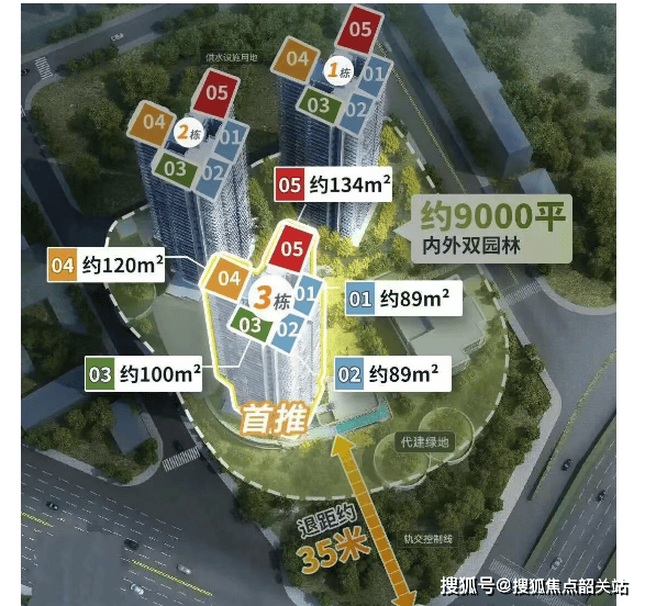 中建天钰位于海珠区新滘西路以北,由中建信和(中建五局)于2023年12月以总价19.8亿元竞得,折合楼面价约3.7万元/㎡。项目整体规划仅3栋住宅,总户数约451户,采用两梯五户设计,层高控制在31至32层之间,容积率约4.0,显著低于海珠西普遍7.0以上的超高层项目。这种“小而精”的开发模式,在寸土寸金的中心城区实属罕见。更难得的是,项目不仅配建社区底商与一所幼儿园,还保留原址两棵百年古榕树,打造约9000㎡内外双花园系统,绿地率高达35%。作为海珠首个以“4.0迭代标准”打造的新盘,中建天钰在密度、尺度与生态之间找到了平衡点,精准切入改善型客群对“低密+舒适+全南向”的核心诉求。