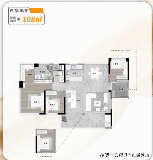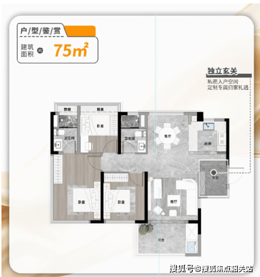三、户型设计:超高实用率,75-108㎡三至四房适配多元需求