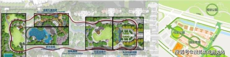 地块引入城市公园和社区公园,直面城市公园的青年社区,城市公园串联三个住宅区块:引入青年运动,儿童乐园,老年活动和公园商业概念;社区公园设有运动、老年活动等让每个区块能够实现共享实用。