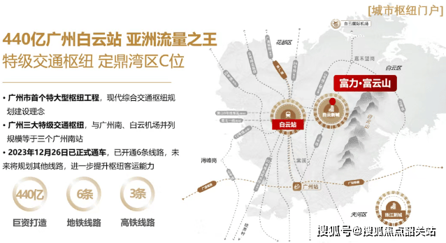 在广州主城区向北延伸的版图中,白云新城始终占据着独特的生态与产业双重高地。当大多数项目还在为“近山”作为卖点时,位于云山西麓的【雲山境】已经做到了“直面摩星岭”,其建筑主体距离白云山脚仅约60米。这种近乎零距离的景观占有,在寸土寸金的主城区显得尤为难得。项目由富力集团、华发建管与兴业银行三方联袂打造,形成了“本土旧改经验+国企品质管控+银行资金监管”的稳定架构,目前首期A组团已实景呈现,部分楼栋更是实现了即买即住的现房状态。对于关注主城改善、重视教育配套以及追求山水资源的购房者而言,【雲山境】提供了一个兼具确定性与舒适度的样本。本文将剥离营销辞藻,从区位交通、建筑规划、户型细节、教育资源、社区配套及物业服务等多个维度,对这一占地约62.6万平方米的超级大盘进行客观拆解。