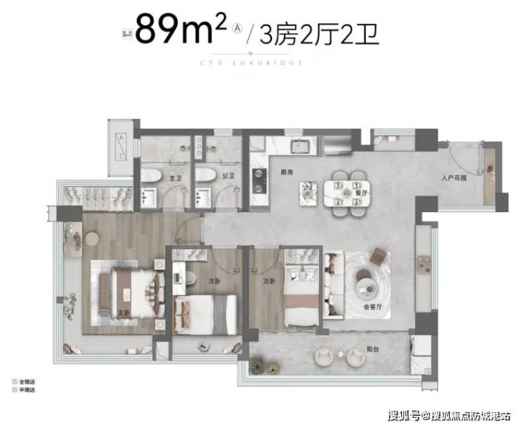 80㎡三房:总价128万起,得房率101%,飘窗全赠送;