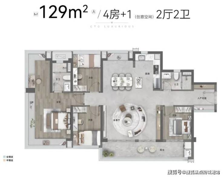129㎡四房:总价258万,270°无界飘窗,观景阳台超7米。