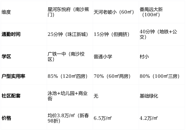 H3 1.2 微观对比:星河东悦府 vs 天河老破小 vs 番禺远大新