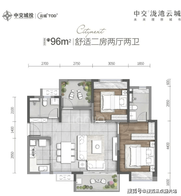 96-99㎡三房两厅两卫户型,是项目的刚需主力户型,总价约160-170万,适配大多数刚需与刚改家庭。该户型采用三开间朝南设计,客厅、两个卧室均朝南,采光与通风效果极佳,让房间始终保持明亮通透。6.3米双开间景观阳台,连接客厅与卧室,不仅拓展了空间视野,还能作为休闲、晾晒、观景的多功能空间,闲暇时可在阳台上种植花草、晾晒衣物,也能俯瞰社区园林美景,享受自然的惬意。户型动静分区清晰,公共区域与私密区域互不干扰,客厅、餐厅一体化设计,提升了空间的通透感与利用率,家人聚会、朋友来访时,也能拥有充足的活动空间。主卧带独立卫生间,保证了居住的私密性与便捷性,次卧空间宽敞,可作为儿童房或客房,满足家庭的多样化需求。