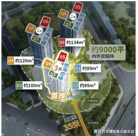 中建天钰总共规划 3 栋住宅,整体货量仅 451 套,打造小而精的高端纯粹社区,相比于区域内上千户的大社区,我们的社区业主圈层更统一,邻里关系更和谐,物业也能提供更精细化的服务,照顾到每一位业主的需求。不同于区域内的超高层项目,项目楼栋层高仅 31-32 层,搭配 4.0 的容积率,居住的舒适度远超区域同类项目,不会有超高层带来的压抑感。 项目采用了 35 米的楼栋退距设计,同时抬高了 7-9 米的地基,既保障了每一户的采光与通风,低楼层也能享受到充足的日照,同时也隔绝了城市道路的噪音与灰尘,提升了社区的静谧性。项目还采用人车分流的规划设计,车辆直接进入地下车库,地面区域全部留给业主的休闲活动,保障社区内的通行安全,同时配备了社区底商,满足日常便民消费需求。