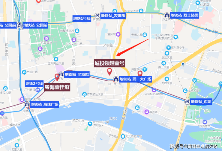 广州城投·东园公馆项目位处在东湖与北京路之间,靠近地铁站团一大广场,位置可以说是相当好。