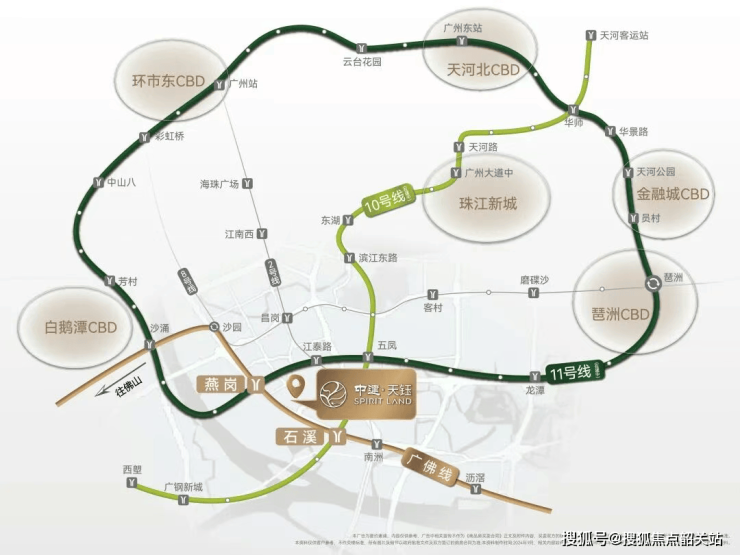 中建·天钰坐落于海珠区新滘西路以北,地处工业大道成熟居住带,与保利燕语堂悦仅隔1.4公里,共享同一片繁华生活圈。但不同的是,中建·天钰占据更为优越的轨道交通优势——项目步行约750米可达燕岗站(广佛线+11号线),约900米抵达石溪站(广佛线+10号线)。这意味着,业主不仅能通过广佛线快速连接佛山千灯湖、祖庙等核心商圈,还可借助10号线直达珠江新城、琶洲电商总部区,或通过11号线环线高效通勤至天河、越秀等城市中心。
