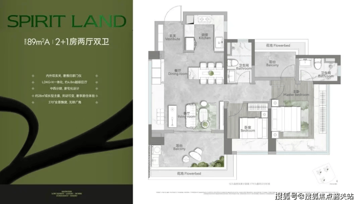 89㎡三房:使用率高达约115%,配备内外双玄关、约4.8米巨厅、中西分厨及270°全景飘窗,堪称海珠使用率之王;