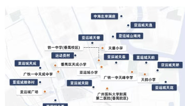 亚运城内部规划了 19 所全龄学府,目前已建成 18 所,且均已开学招生。其中包括 9 所幼儿园、5 所小学、3 所初中和 2 所高中,尤其值得一提的是,4 所省一级的 “广铁一中” 已全部开学,1 公里内有 13 所学府,孩子步行即可上学,为业主子女提供了丰富且优质的教育资源,解决了家长对孩子教育的后顾之忧。