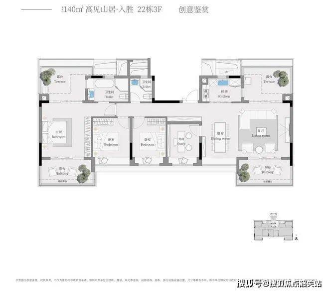 强调景观与私密性,主卧套房尺度接近豪宅标准,满足高端改善需求。