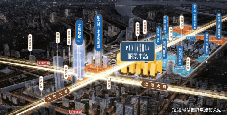 阳光城丽景半岛位于粤港澳大湾区几何中心的南沙区,地处蕉门河CBD中心区,享有南沙行政、商业、文化和居住四大中心的优势。作为“南沙版珠江新城2.0”,这里不仅汇聚了超过80%的成熟教育和医疗资源,还致力于打造一个高品质的生活环境。项目占地面积为47,958平方米,建筑面积达到388,112平方米,绿化率为28%,容积率则高达7.02。