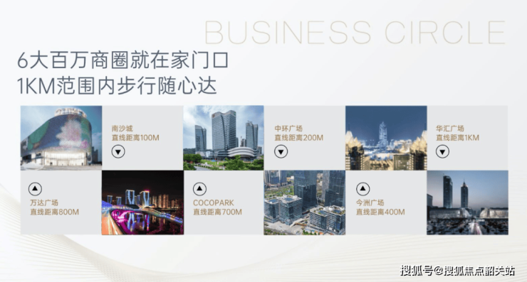 项目对面即是南沙城,周边还有南沙万达广场、COCOPark等多个大型购物中心,形成了一个繁华的商业圈,满足居民日常生活的各种需求。