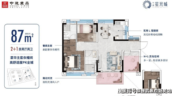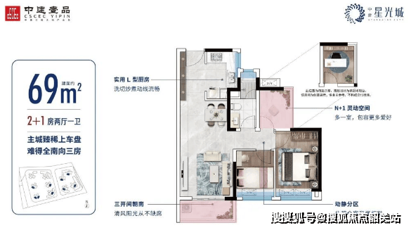 中建星光城主打建面约69-118㎡二至四房,全户型采用“纯南向+高得房率+全屋智能”设计: