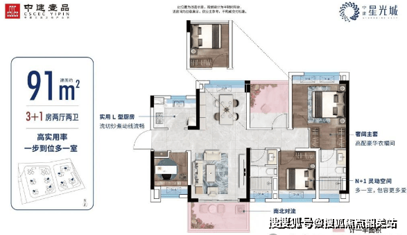 1. 户型设计:纯南向+高得房率,空间利用率领先市场