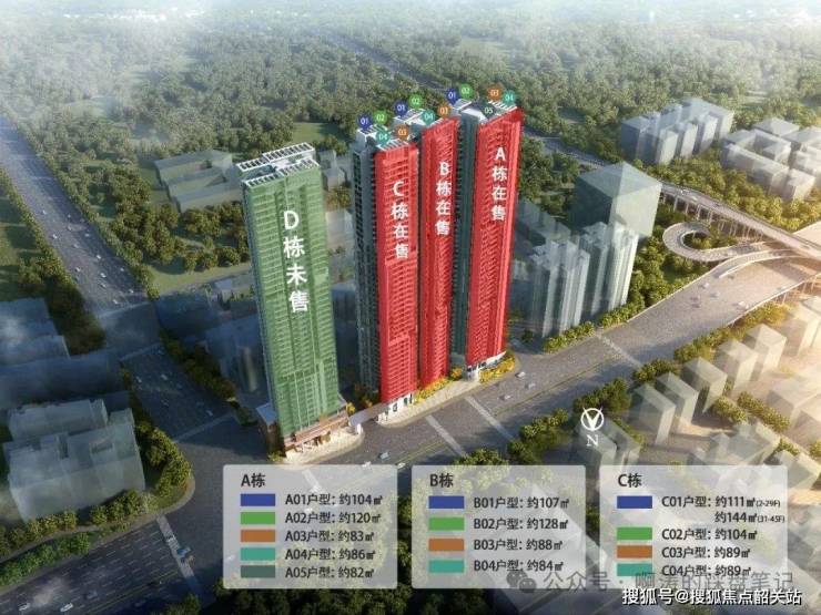 A栋产品:约82-120㎡三房至四房,三梯五户