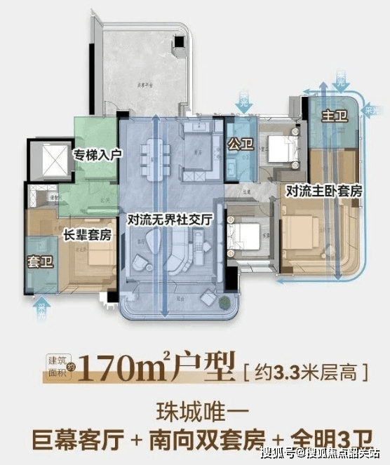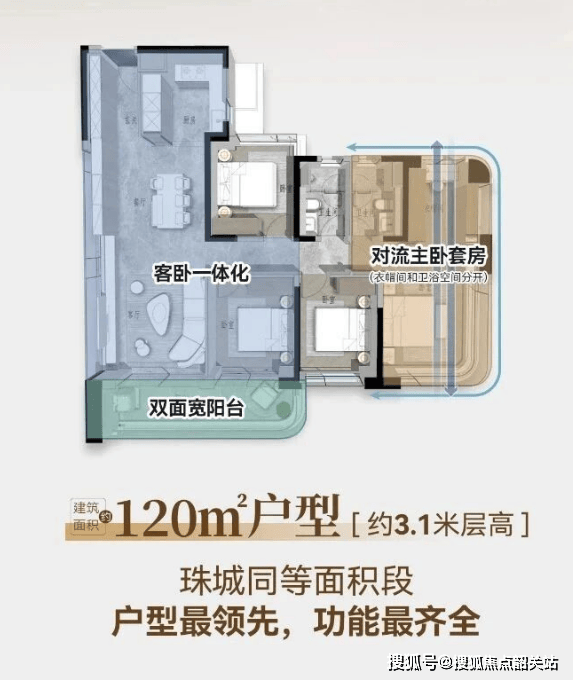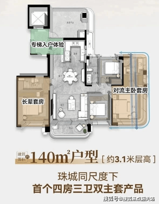 B1栋至B3栋(北地块塔楼):分别为47层、46层、45层,采用全南向舒展T3/4楼型,确保每户均为南向单边位。