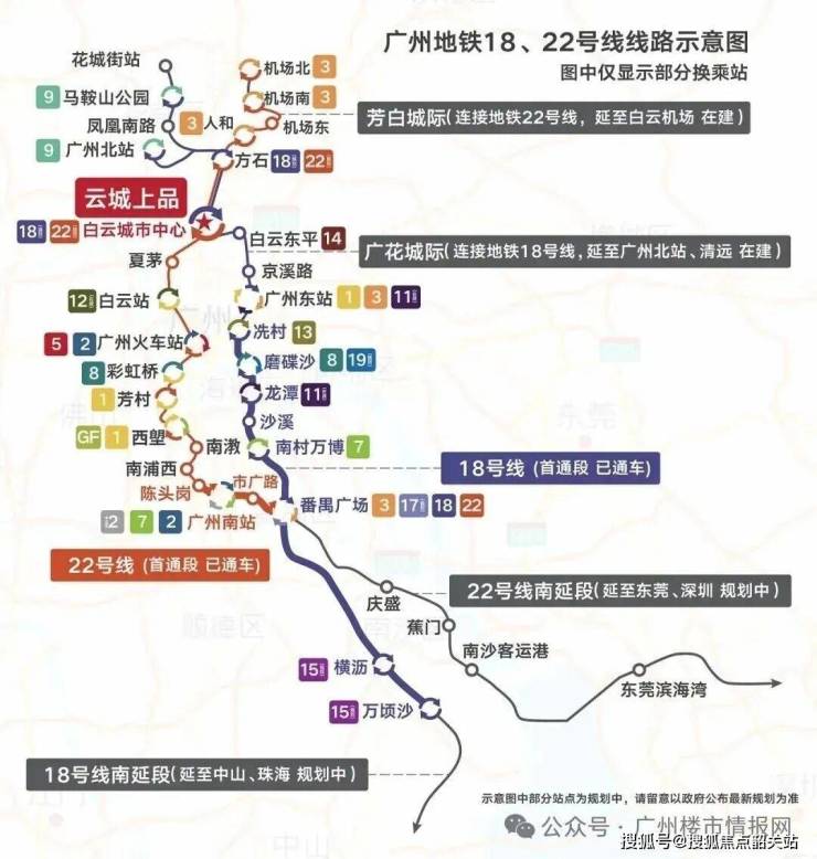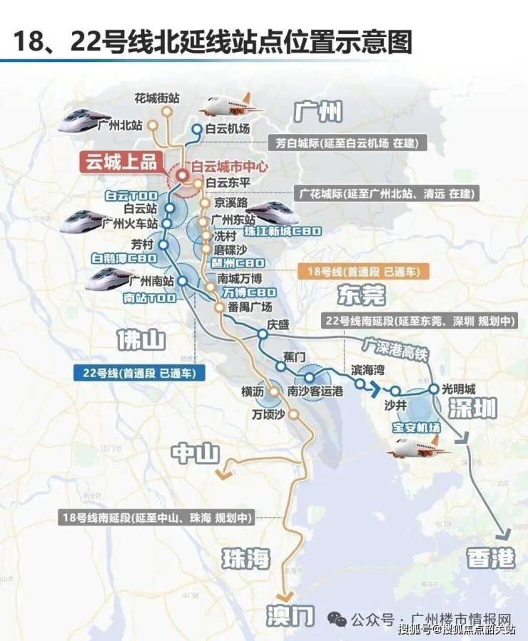向西:依托地铁18号线和22号线,直通广州南站、南沙客运港及佛山方向,构成了连接空港、城区与核心商务区的超级枢纽。